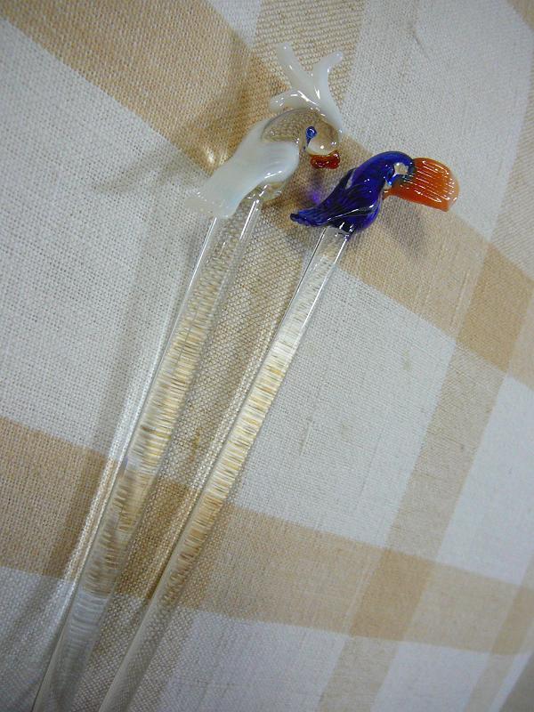 とってもキレイなガラスのインコちゃんマドラー