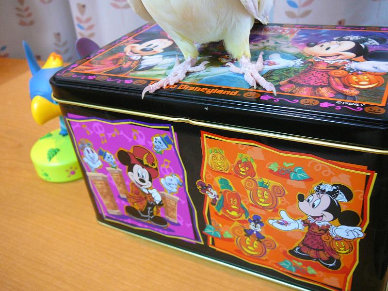 昨日ランドで買ったハロウィン缶。中身はおせんべいです。