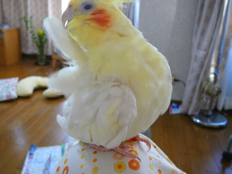 あー、羽根が抜けかけてるのね。気にならないのね。