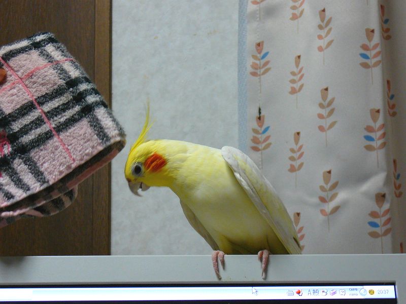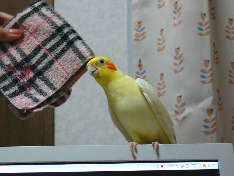 オカメのオスって、どうしてタオルとか好きな子が多いんでしょうね。
