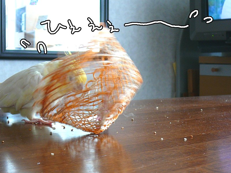 カゴで遊んでいた未甘ですが、あまりにエキサイティングしたのかカゴがひっくり返りそうに!