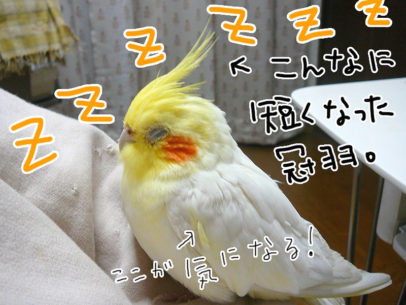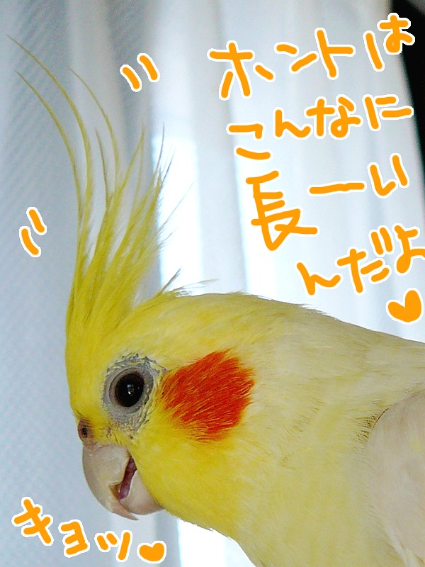 オカメのトレードマークともいえる冠羽。未甘の立派な冠羽。