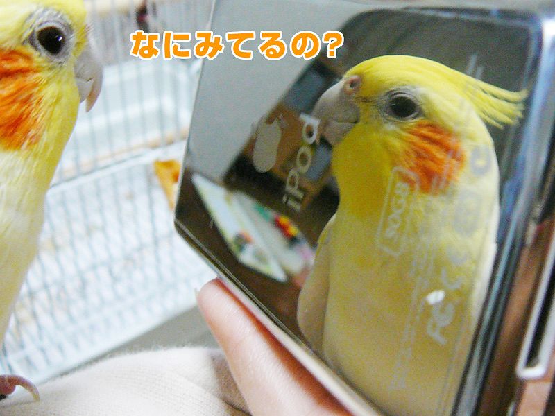 自分が写っているというか、鏡に気付いていないのでゴキゲンです。