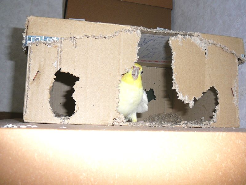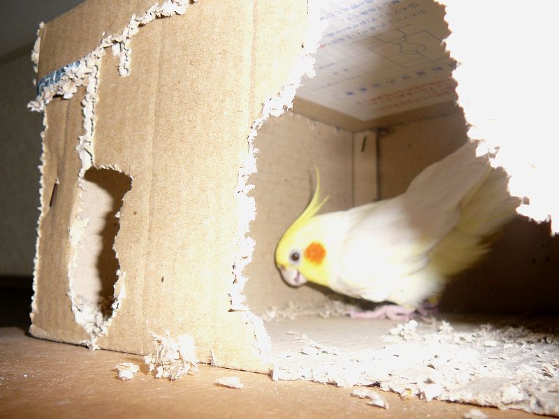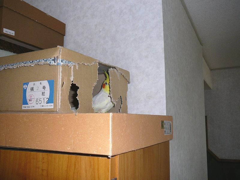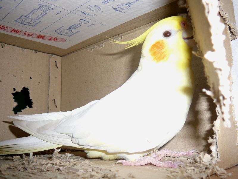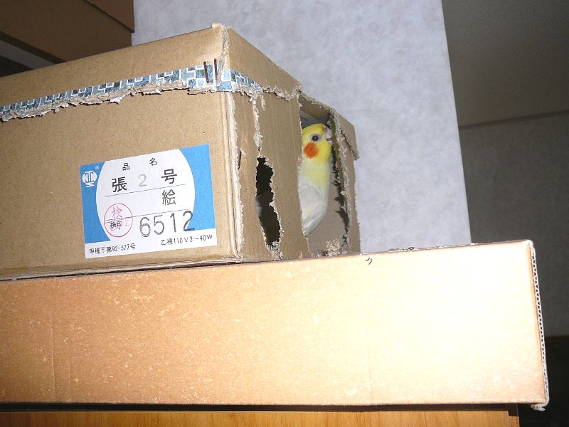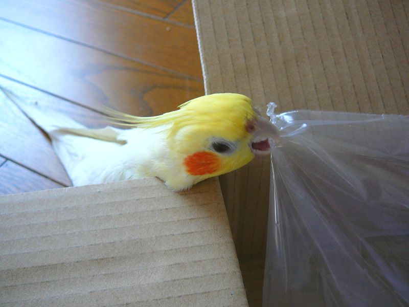 さて、今日のタイトル「オカメパニック」ですが、カゴの中でいきなり