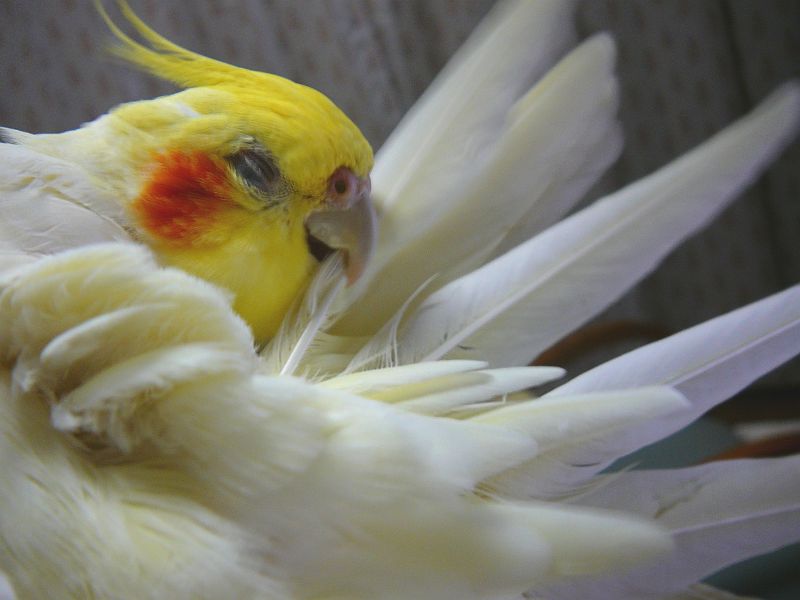 毎回、尾羽等の大物が抜けると痛がる未甘。可哀相です。
