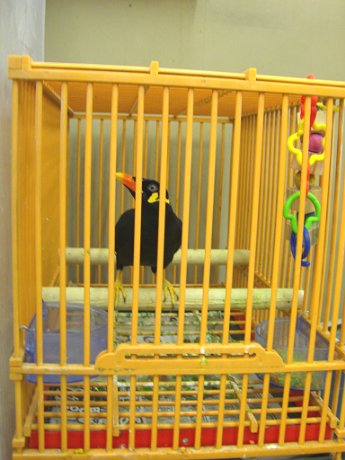 九官鳥です。「は~い」と可愛い声で呼んでます。