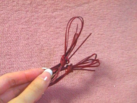 普通の輪ゴムよりちょっと小さくて色が赤いです。