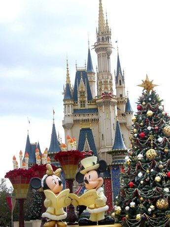 シンデレラ城をバックにツリーとミキミニを1枚。