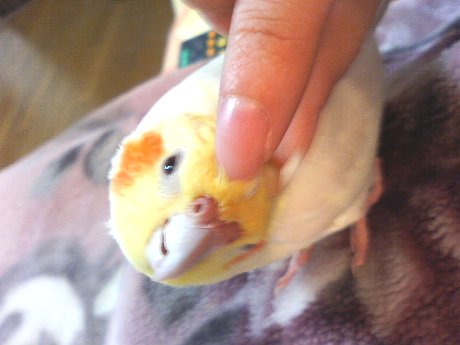 ※オカメインコのルチノー種は頭部の後ろに無毛部分がありますが品種によるものですのでご心配いりません。(固体差はあります。)