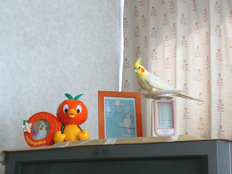 ヒナの頃から、カゴから出たらまず量りの上!が未甘にとっては当たり前の事なので、ぜんぜん怖がりません。