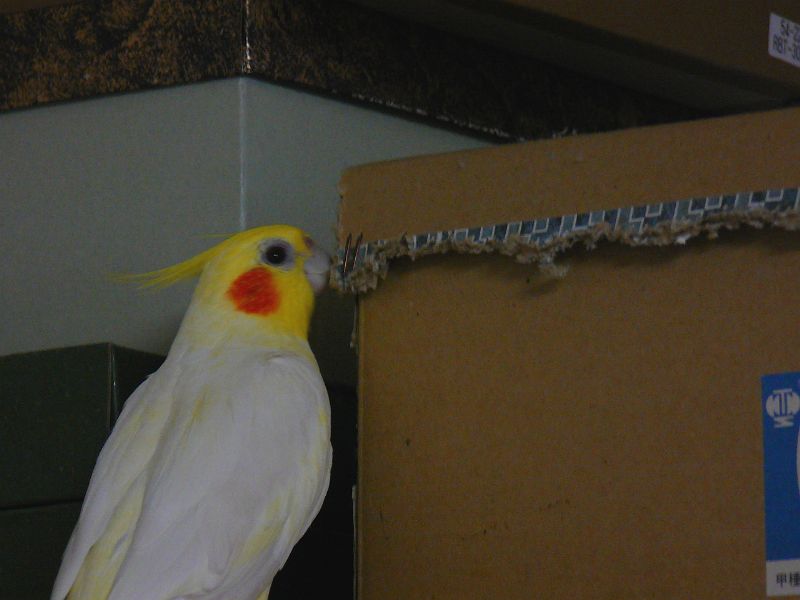その後はまるで注意された当てつけのように、ダンボールをバリバリ、たくさんの巣材を作ってくれました(^^)